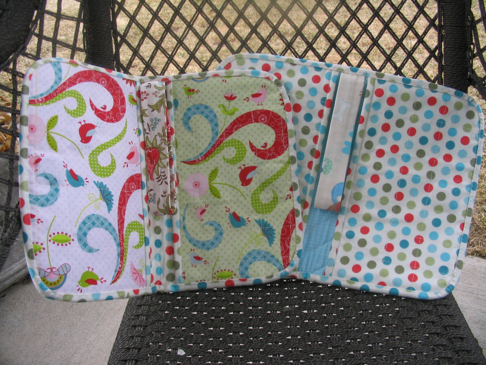 Here's what the inside looks like. Diapers are inserted in one pocket and a small package of baby wipes fits in the other.